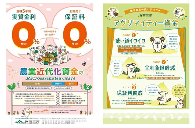 JA西三河金融部金融企画課では営農部と連携し、農業関連融資の推進の取組を行っています。メインで取り扱うのは農業近代化資金・アグリマイティ―資金の2種で、金利部分および保証料について県・市・JAバンク等より助成を受けることが可能。金融企画課の担当職員が各種の生産者部会の会合へ出向き、農業関係融資について説明を行っています。また、同JAが実施する施設イチゴの新規就農者育成講座「いちごスクール」においても、就農を目指す受講生に向けて、ハウス建設等の資金融資について案内。ビニールハウスや高設栽培設備など、多額の初期投資が必要となる新規就農者へのスムーズな資金案内は、同スクールにおける強みのひとつとなっています。