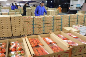 県内有数のイチゴ産地である西尾市で、クリスマスケーキなどに使われる業務用イチゴの出荷が始まり、12月上中旬に冬のピークを迎えています。10日から21日にかけて約21万パック(約53㌧)の出荷を見込み、需要が最も高まる18、19日には、1日あたり約1万8千パック(約4.5㌧)を出荷しました。